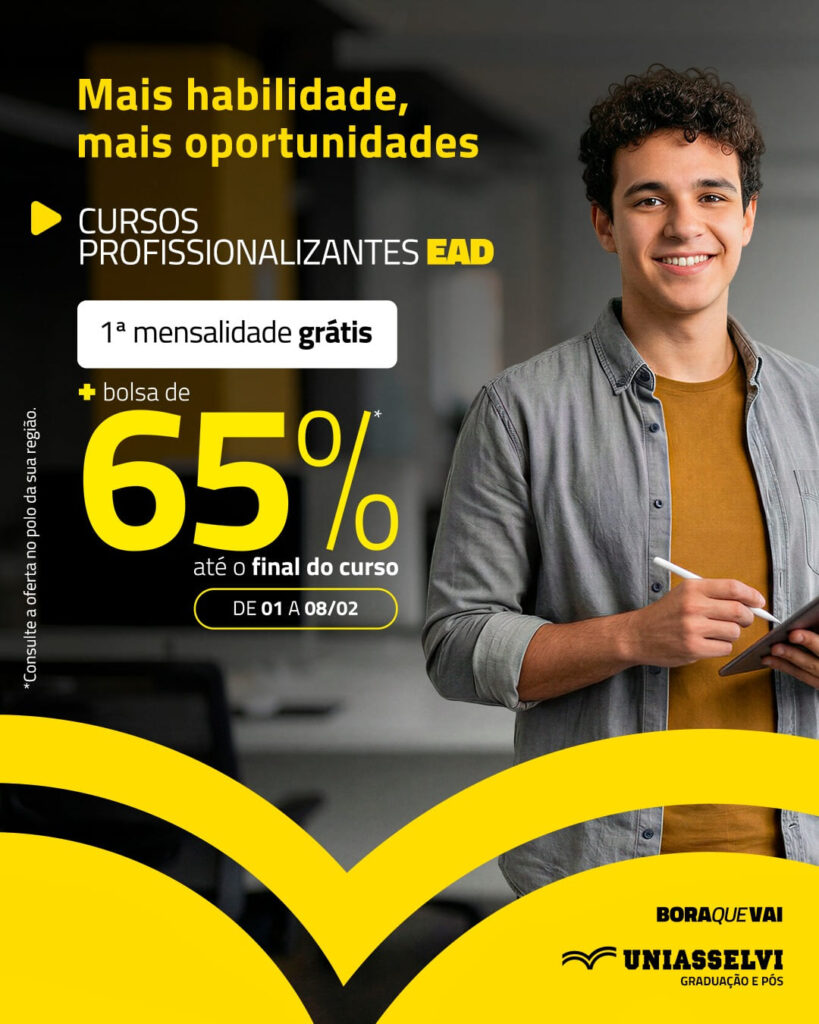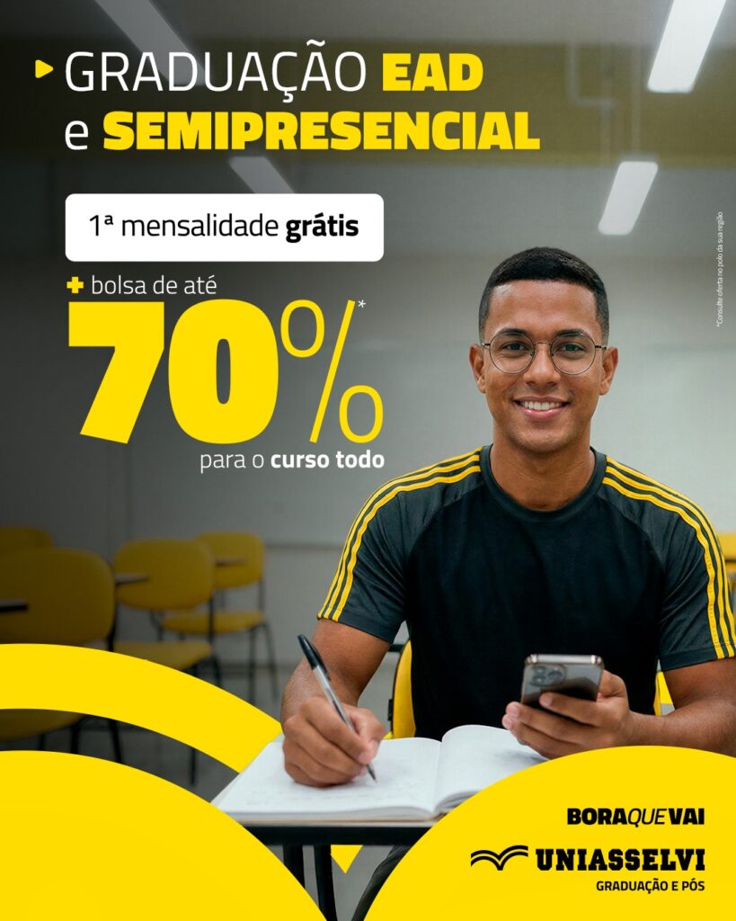 Uniasselvi de Biguaçu oferece 1ª mensalidade grátis e bolsas de até 70% em cursos EAD e semipresenciais