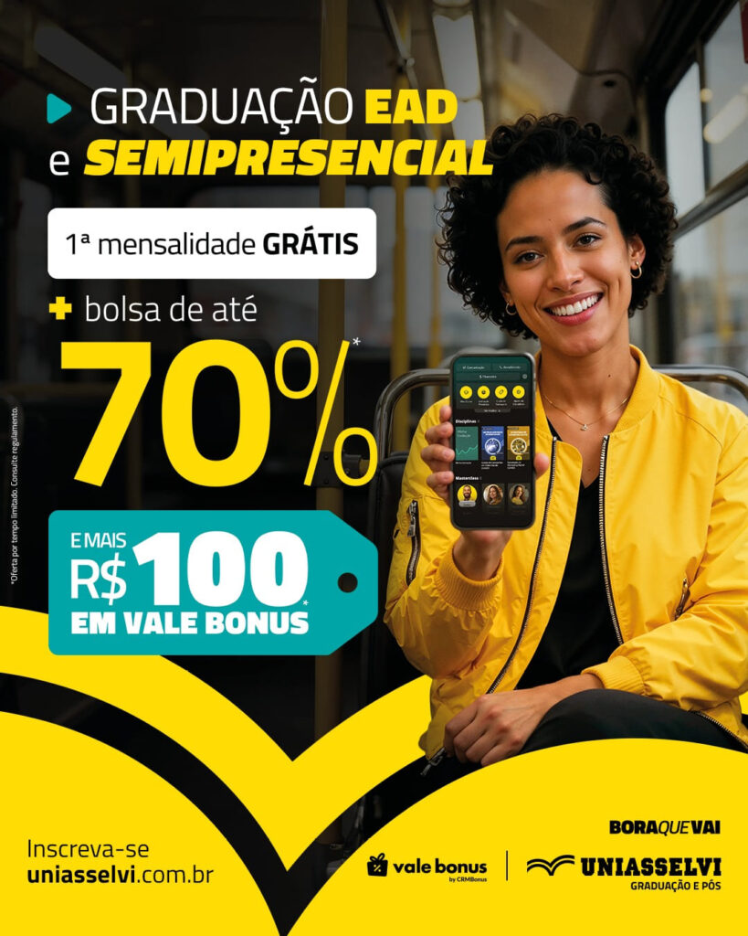 Uniasselvi oferece bolsas de até 70% e primeira mensalidade grátis em cursos de graduação