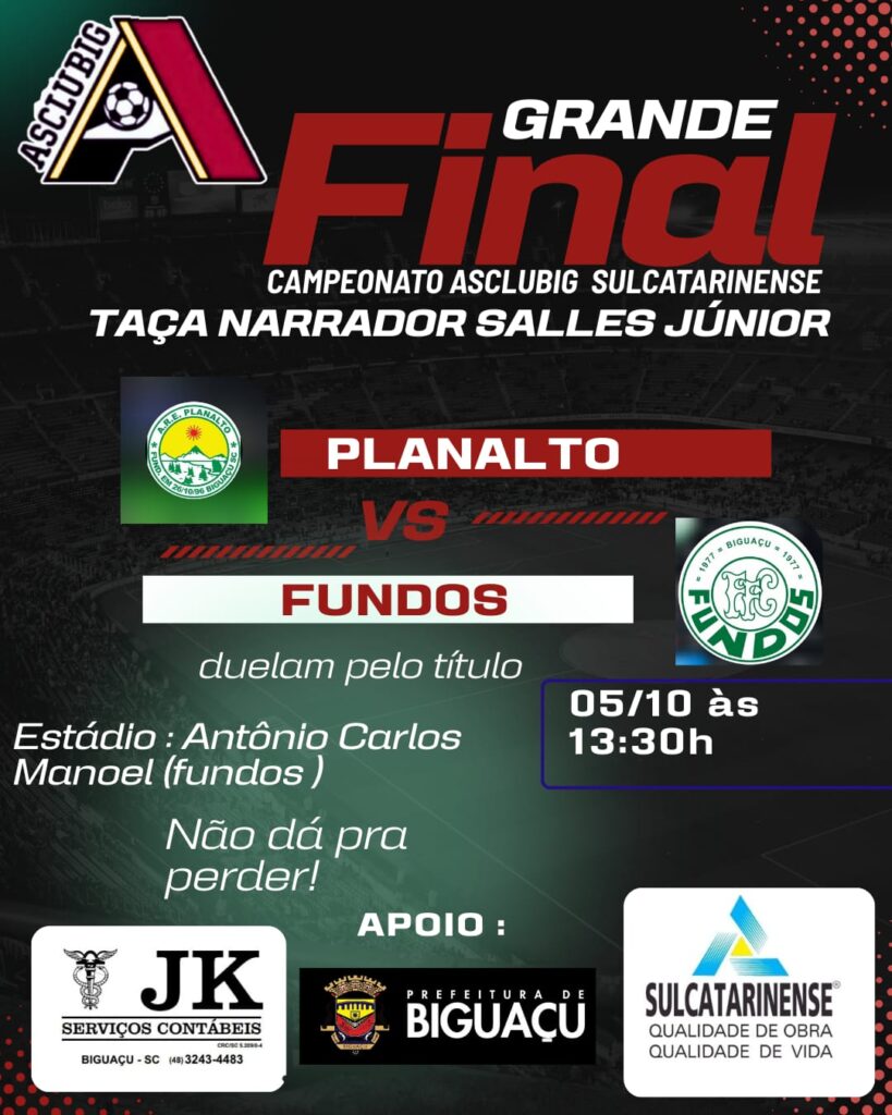 Planalto e Fundos disputam a grande final do Campeonato Asclubig SulCatarinense