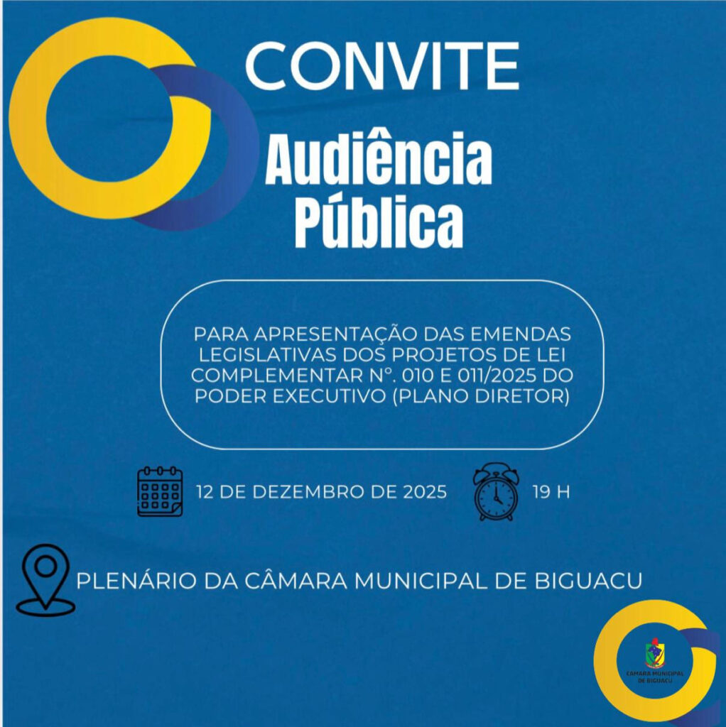 Câmara Municipal de Biguaçu convoca população para audiência pública sobre emendas do Plano Diretor Municipal