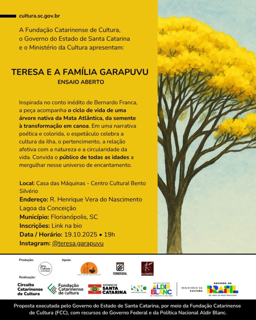 “Teresa e a Família Garapuvu” traz a cultura manezinha em espetáculo teatral gratuito na Lagoa da Conceição