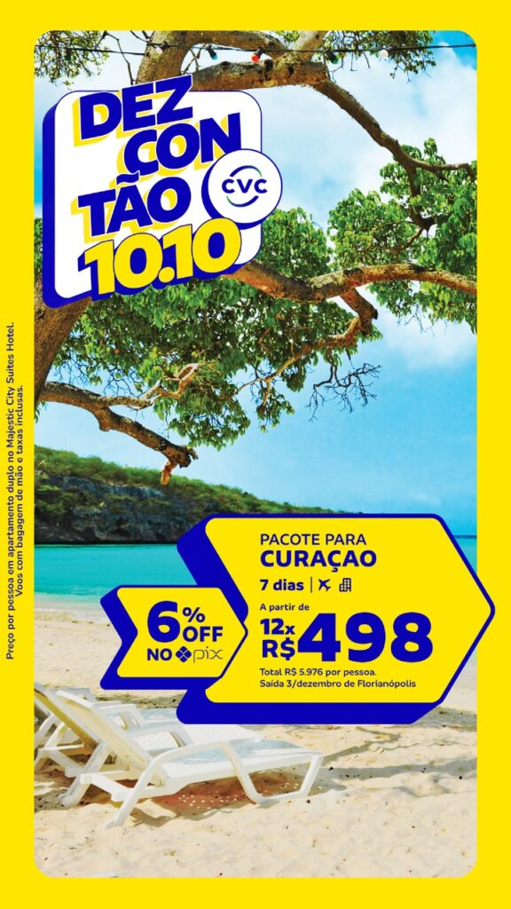 CVC lança campanha “Dezcontão 10.10” com pacotes para Curaçao a partir de R$ 498