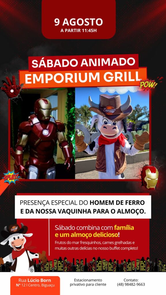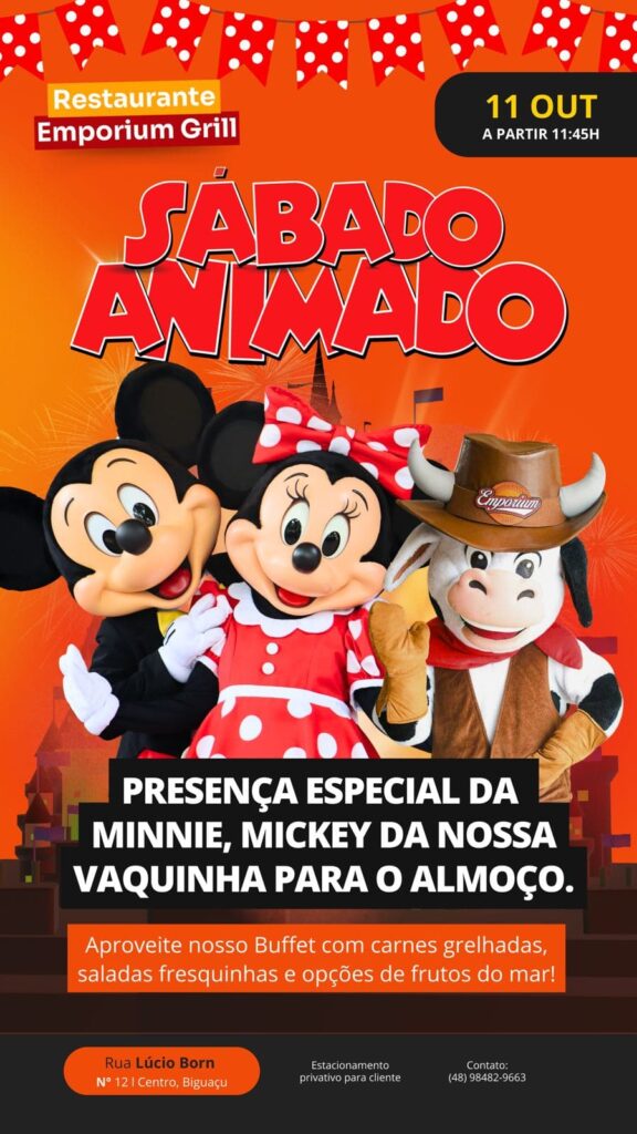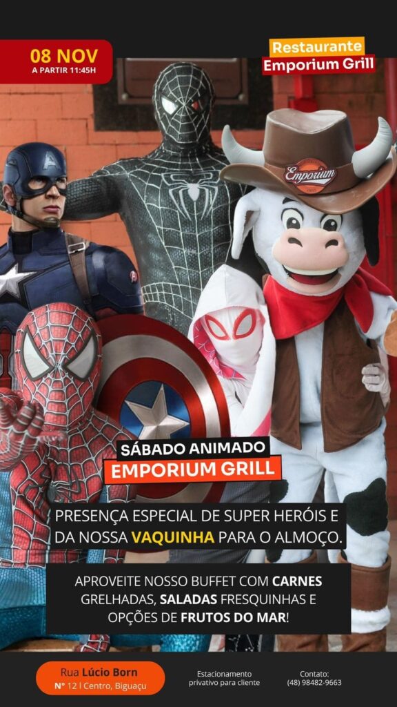 Emporium Grill prepara “Sábado Animado” com presença especial de personagens infantis em Biguaçu