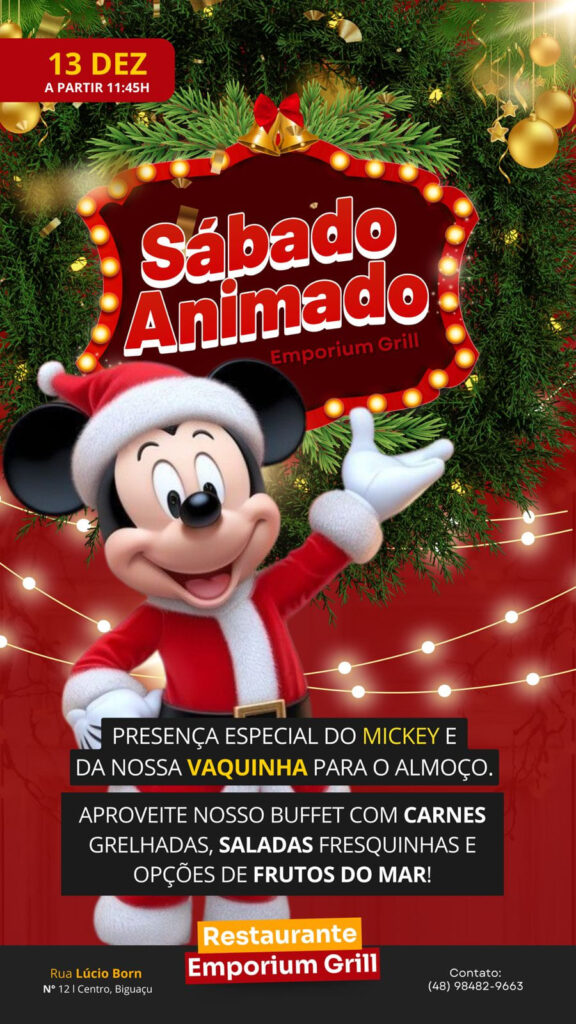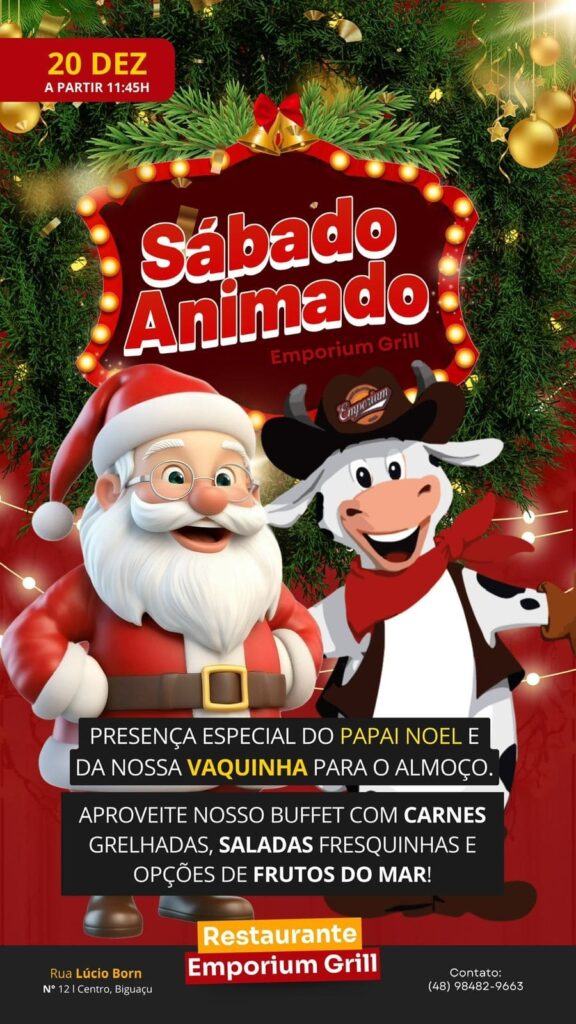 Sábado Animado com Papai Noel e a Vaquinha do Emporium Grill promete diversão e sabor em Biguaçu