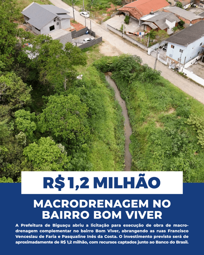 Biguaçu investe R$ 1,2 milhão em obra de macrodrenagem no bairro Bom Viver
