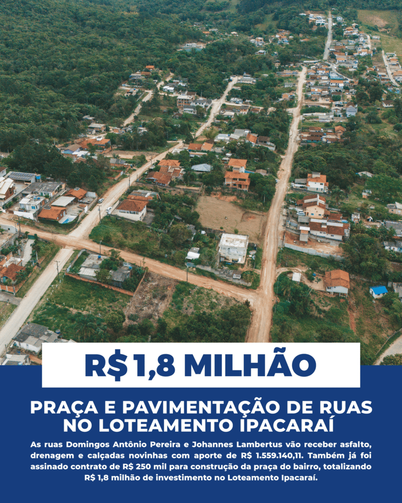 Biguaçu investe R$ 1,8 milhão em pavimentação e nova praça no Loteamento Ipacaraí