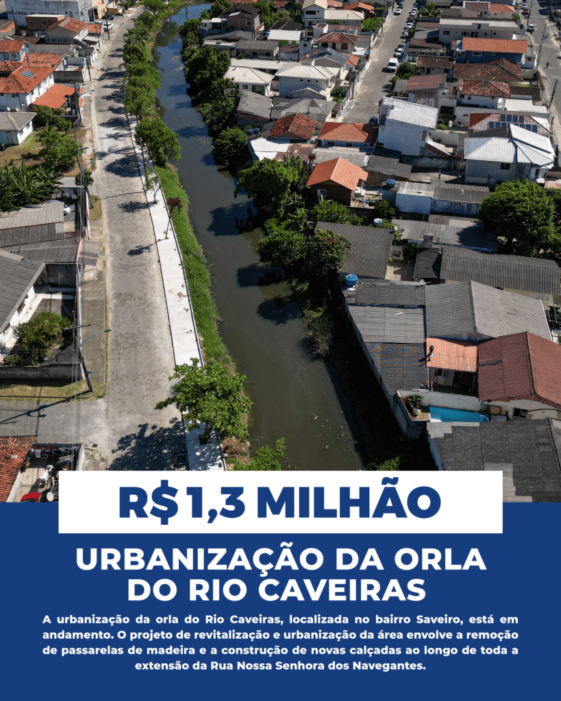 Urbanização da orla do Rio Caveiras recebe investimento de R$ 1,3 milhão em Biguaçu