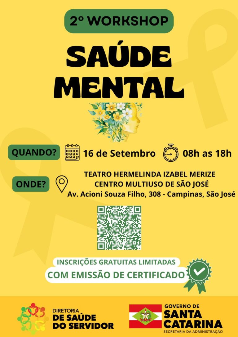 Além das palestras, o workshop também contará com depoimentos de experiências pessoais sobre os desafios da saúde mental. O objetivo, segundo os organizadores, é ampliar a compreensão sobre o tema, fortalecer práticas de prevenção e estimular o autocuidado entre os servidores públicos.