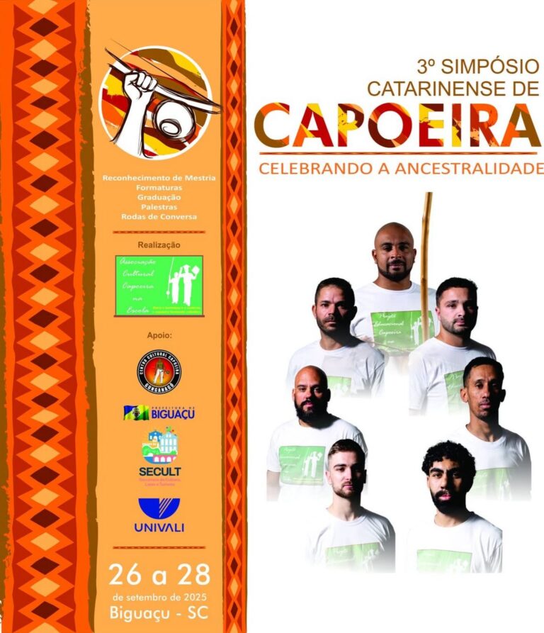Evento celebra a ancestralidade e destaca a importância cultural da capoeira em Santa CatarinaEntre os dias 26 e 28 de setembro, a cidade de Biguaçu será palco do 3º Simpósio Catarinense de Capoeira – Celebrando a Ancestralidade, um dos maiores eventos do estado voltados à valorização e difusão da capoeira como expressão cultural, histórica e social do Brasil.