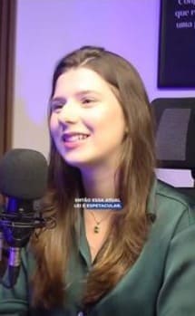 Foto: Vereadora eleita Bia Borba durante entrevista ao Em Foco Podcast, apresentada por Décio Baixo Alves, fala sobre trajetória, valores e projetos para Biguaçu. (Foto Divulgação)