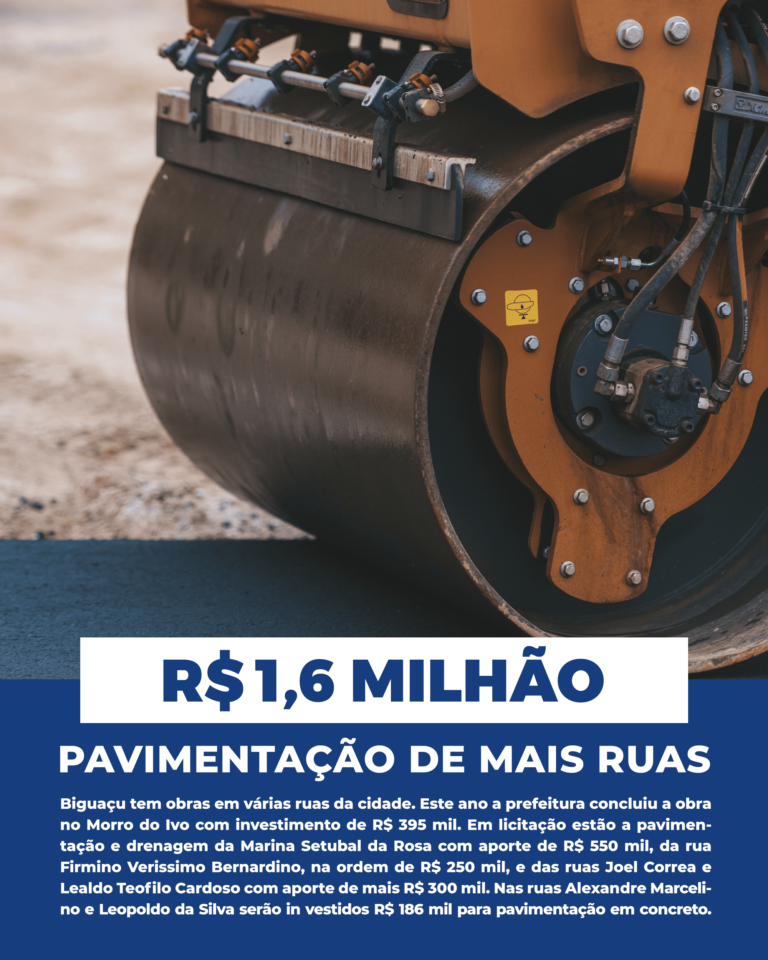 A Prefeitura de Biguaçu segue investindo na melhoria da infraestrutura urbana, com destaque para novas obras de pavimentação em diferentes regiões da cidade. Somente neste ano, o montante aplicado ultrapassa R$ 1,6 milhão.