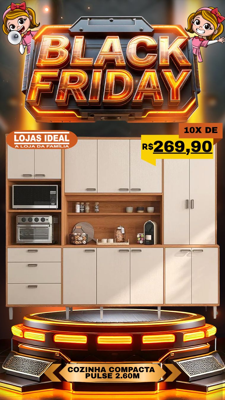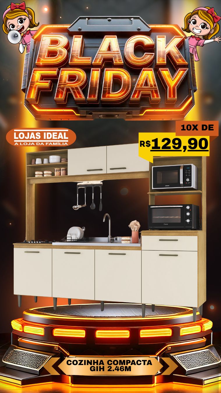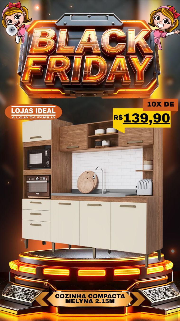 A Black Friday chegou com tudo nas Lojas Ideal, trazendo as cozinhas compactas mais desejadas do momento. Os modelos combinam estilo, qualidade e acabamento de alto padrão, ideais para quem busca praticidade e um visual moderno para o ambiente.