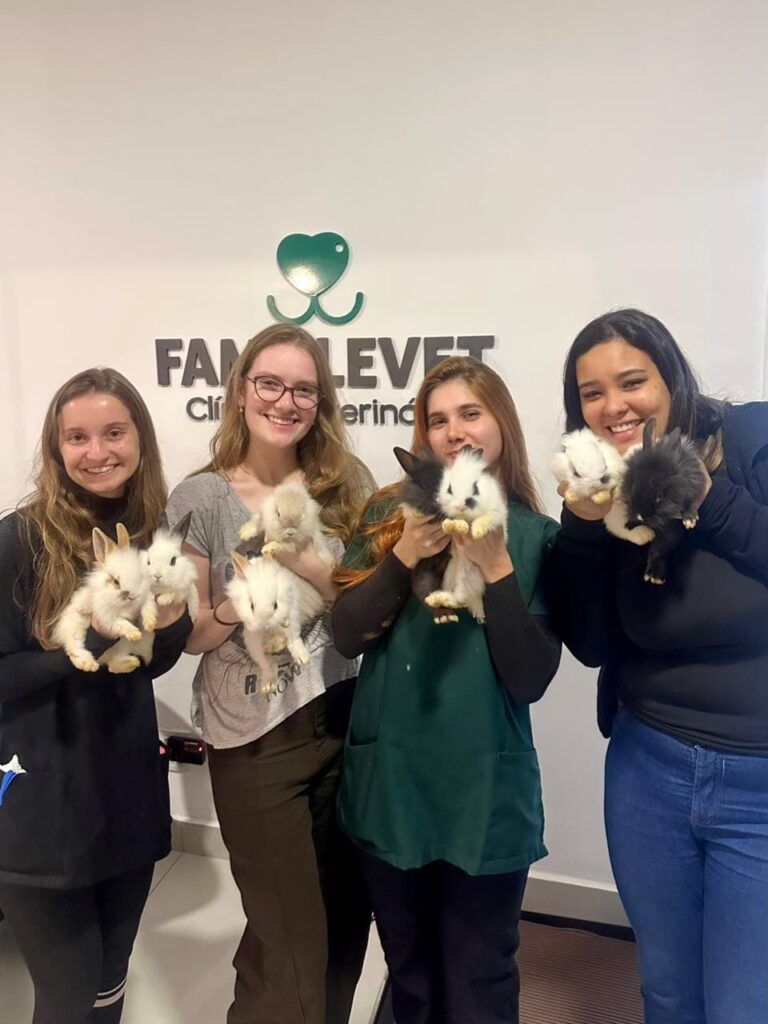 A clínica, que atende pets não convencionais, contou com a expertise da médica veterinária Bruna Quadros, responsável pelo acompanhamento dos coelhinhos. A profissional garante que todos os filhotes receberam atenção adequada para seu desenvolvimento e saúde.