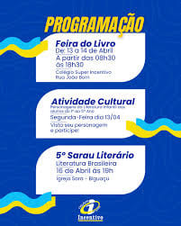 Durante os próximos dias, a escola também promoverá um Sarau Literário, momento voltado à expressão cultural e artística dos estudantes, estimulando a criatividade, a interpretação e o gosto pela literatura.
