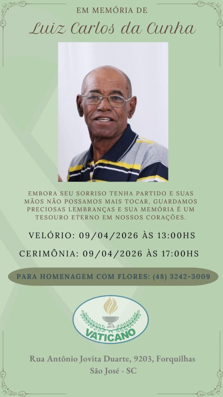 As homenagens com flores podem ser organizadas por meio do telefone (48) 3242-3009. A despedida acontece nas dependências do Vaticano, localizado na Rua Antônio Jovita Duarte, 9203, bairro Forquilhas, em São José, Santa Catarina.