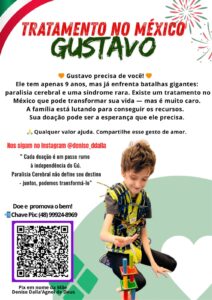 “Cada doação é um passo rumo à independência do Gú. Paralisia cerebral não define seu destino — juntos, podemos transformá-lo”, destaca a família na campanha divulgada nas redes sociais.