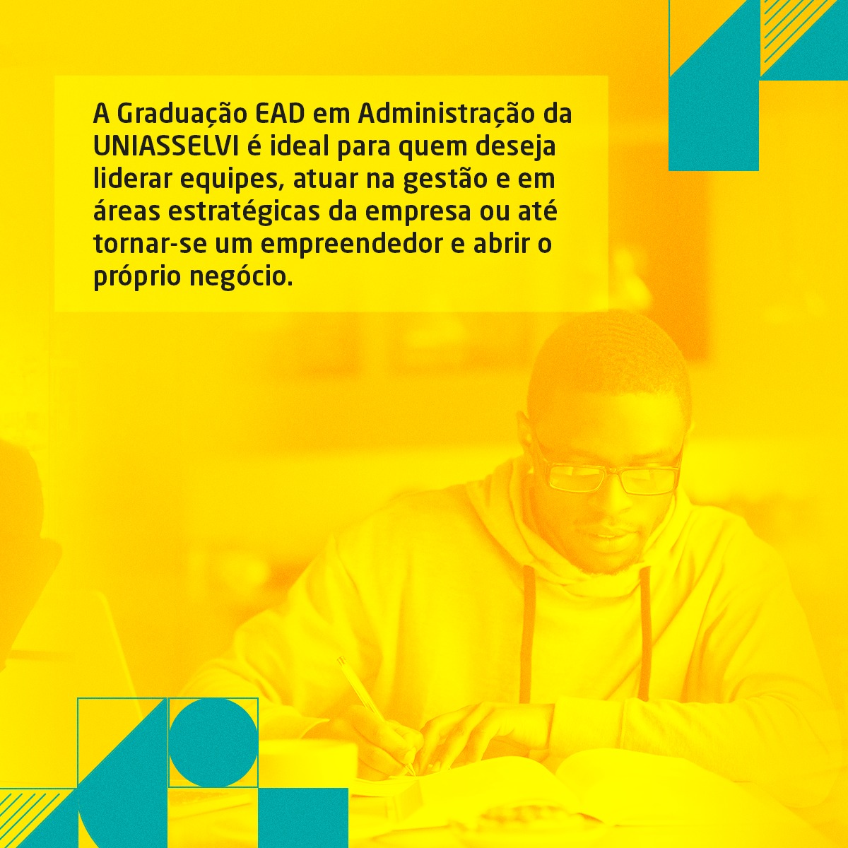 Em Biguaçu, a Uniasselvi oferece o curso de graduação em Administração na modalidade EAD, ideal para quem deseja liderar, atuar em áreas estratégicas ou abrir o próprio negócio. Entre os diferenciais estão a flexibilidade da modalidade à distância, encontros presenciais semanais, professores capacitados e matriz curricular atualizada.