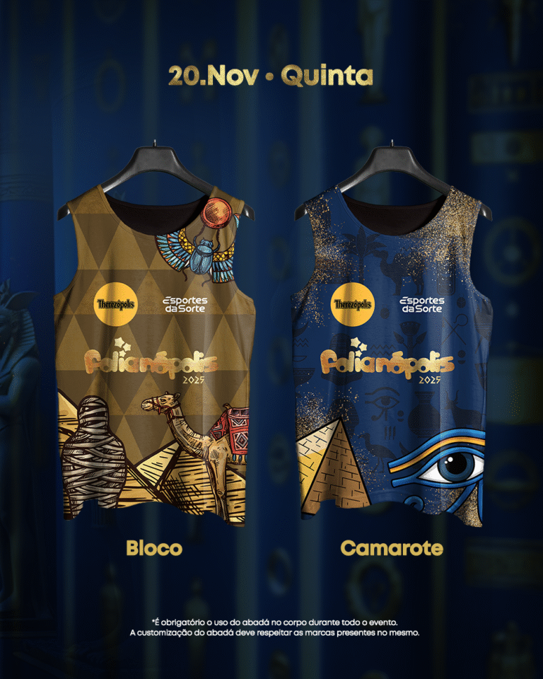 Os abadás de 2025 seguem a identidade visual inspirada no tema “Egito”, que toma conta de toda a cenografia e comunicação da micareta, traduzindo o universo místico e grandioso que marcará esta edição. A entrega no Floripa Airport transforma o terminal em um verdadeiro Lounge do Folia, com ativações de marca, espaços instagramáveis, customização de abadás, shows e experiências exclusivas para os foliões.