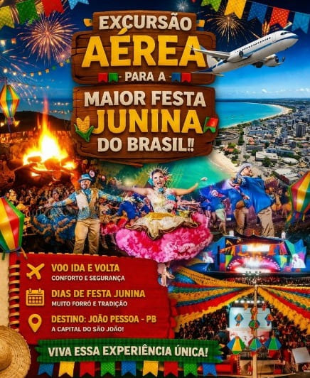 A Graceturismo está com uma oportunidade imperdível para quem deseja viver uma das celebrações mais tradicionais e animadas do país. A agência lançou uma excursão aérea para João Pessoa e Campina Grande, entre os dias 25 e 30 de junho, com saída de Florianópolis, reunindo cultura nordestina, praias paradisíacas e a energia contagiante do São João.
