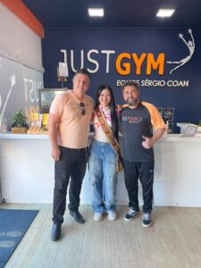 Kauane entre seu pai Rodrigo Garbelotto, popular Sônia e o proprietário da Academia Justin Gym Sérgio Coan
