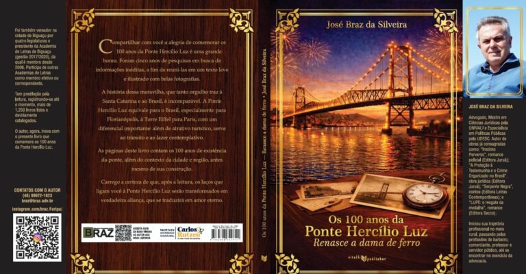 O centenário de um dos maiores símbolos de Santa Catarina será celebrado com o lançamento de uma obra especial. O livro “Os 100 anos da Ponte Hercílio Luz – Renasce a dama de ferro”, do autor José Braz da Silveira, será lançado no próximo dia 8 de abril de 2026, às 19h, na Assembleia Legislativa de Santa Catarina (Alesc), em Florianópolis.