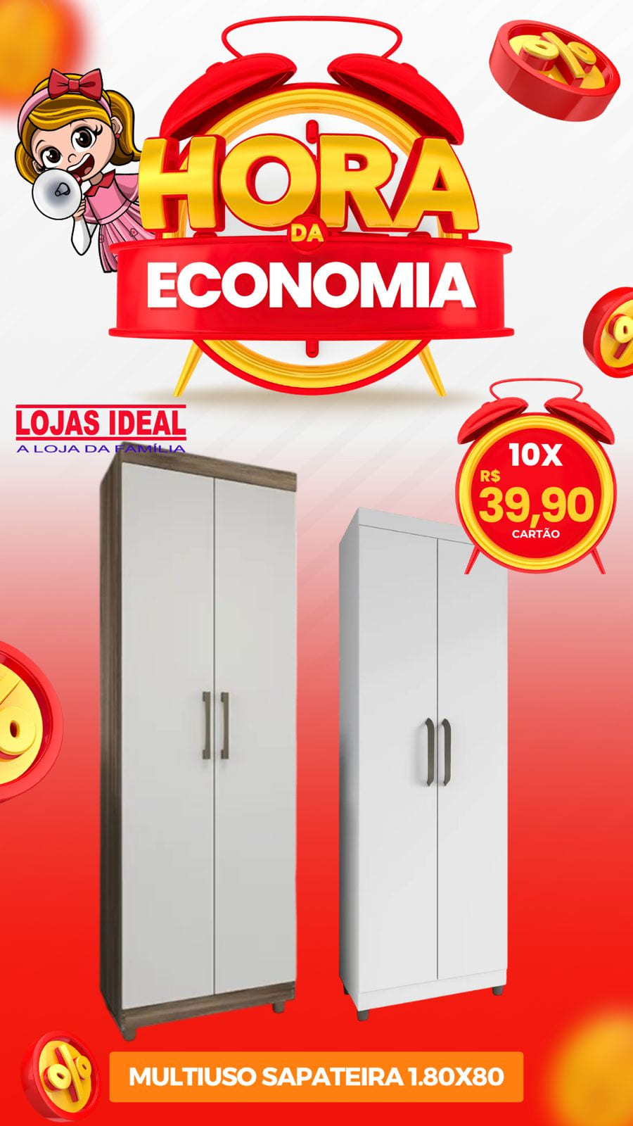 Para completar, a campanha também apresenta o Multiuso Sapateira 1,80×80, com condições imperdíveis de 10x de R$ 39,90 no cartão, uma opção prática para otimizar o ambiente com elegância.