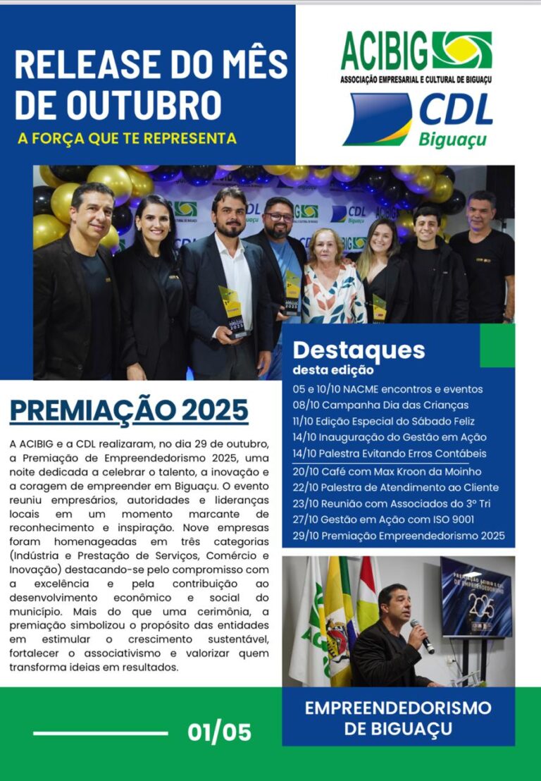 Clique aqui e veja a edição completa do Release de outubro da Acibig.