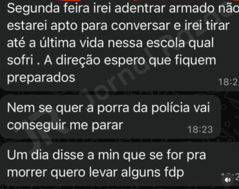 As mensagens que motivaram a operação foram publicadas em um grupo de WhatsApp frequentado por estudantes. O conteúdo das ameaças rapidamente se espalhou, causando apreensão entre pais, alunos e profissionais da educação. Diante da gravidade da situação, a direção da escola registrou o boletim de ocorrência — o único formalizado sobre o caso —, após constatar as mensagens no grupo.