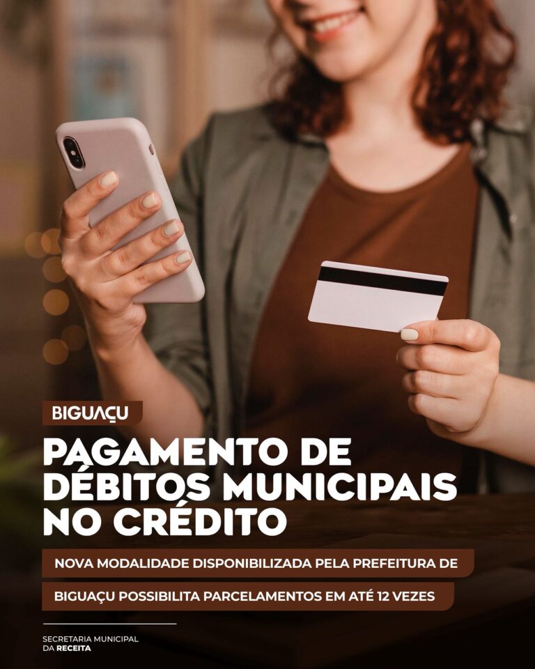 A Prefeitura de Biguaçu, por meio da Secretaria Municipal da Receita, anunciou uma nova facilidade para os contribuintes que desejam regularizar seus débitos municipais. A partir deste mês de agosto, já é possível realizar o pagamento de tributos como IPTU, ITBI, ISS e outras taxas com cartão de crédito, com a opção de parcelamento em até 12 vezes.