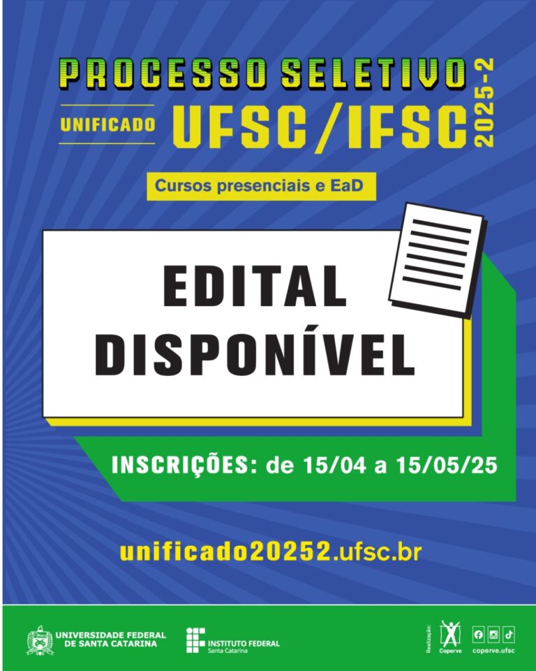 Estado: Processo Seletivo Unificado UFSC/IFSC 2025-2 abre inscrições