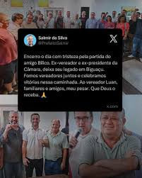 O ex-prefeito de Biguaçu, Salmir da Silva, que é pré-candidato a deputado estadual, manifestou pesar pela morte do ex-vereador Manuel Airton Pereira, o Bilico, falecido nesta terça-feira, 15 de abril de 2026, aos 66 anos.