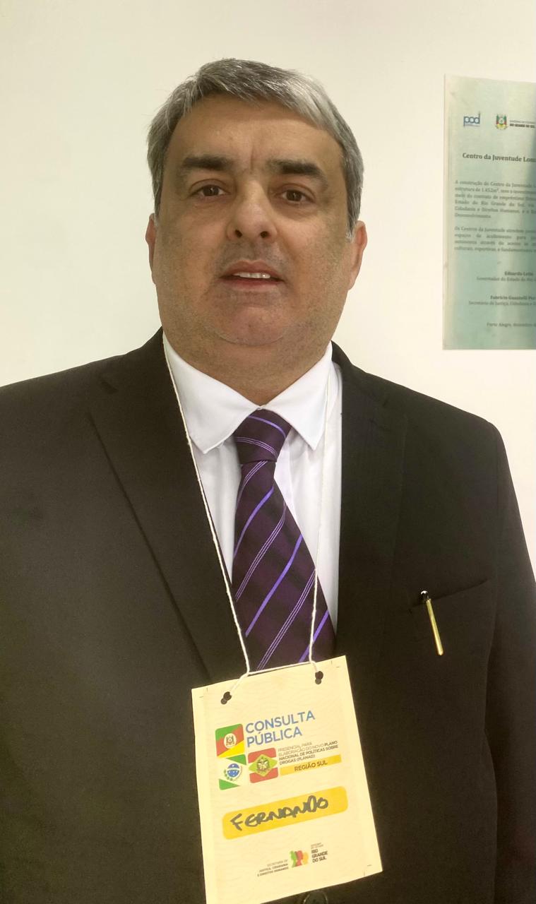 Representando o Estado de Santa Catarina, o advogado Fernando Henrique da Silveira participou dos debates em nome do Conselho Estadual de Entorpecentes (CONEN-SC). Fernando é servidor público estadual há mais de 30 anos, lotado na Diretoria de Saúde do Servidor (SEA/DSAS) e atua como representante da Secretaria de Estado da Administração junto ao CONEN. Ele já foi vice-presidente do órgão entre 2019 e 2021 e exerce atualmente seu segundo mandato como presidente (2021-2023 e 2023-2025), além de já estar confirmado como vice na gestão 2025-2027.