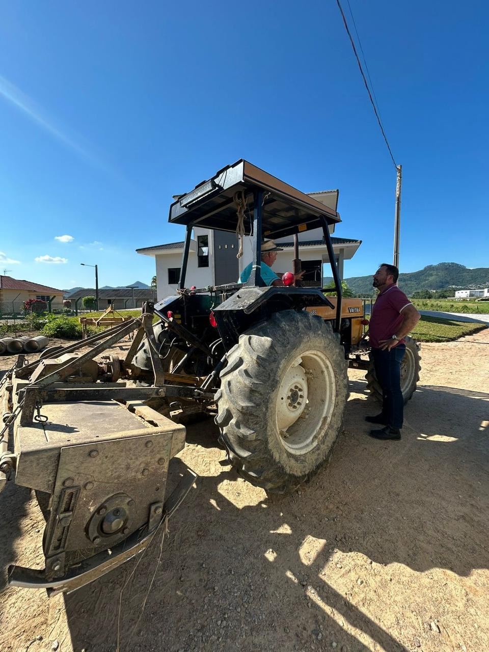 Entre as melhorias promovidas, destacam-se a recuperação de estradas de acesso às propriedades rurais, a limpeza de valas pluviais, a distribuição de calcário e a aquisição de um novo trator, reforçando a frota municipal.