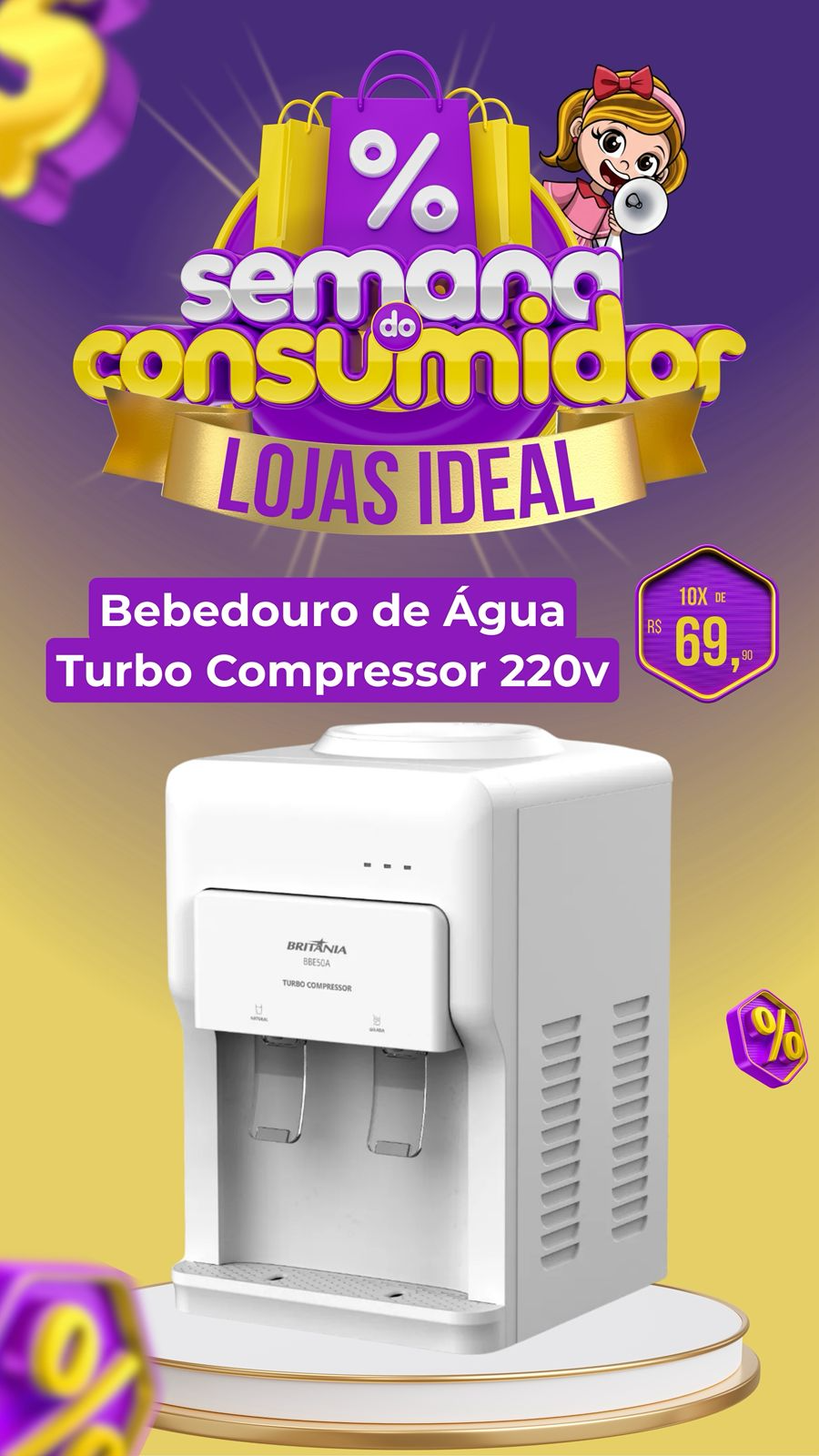 Para quem busca praticidade no dia a dia, o Bebedouro de Água Turbo Compressor 220v também integra a lista de ofertas. O equipamento proporciona água gelada com eficiência e pode ser adquirido em 10 parcelas de R$ 69,90.
