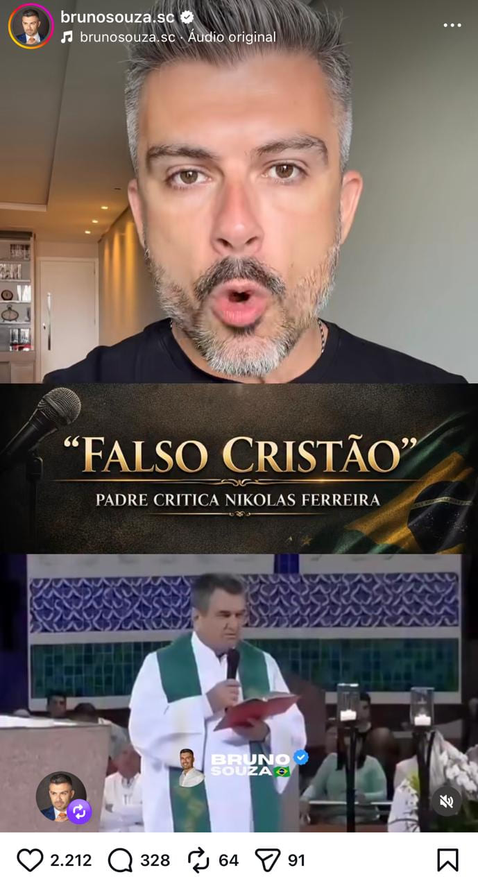 Recentemente, o padre Fernando Marsilha, de Aparecida, fez duras críticas ao deputado federal Nícolas Ferreira e àqueles que defendem o direito ao porte e à posse de armas. Em sua fala, o sacerdote classificou como “falso cristão” quem apoia o armamento civil e afirmou que “a arma só tem uma finalidade: ferir e matar”.