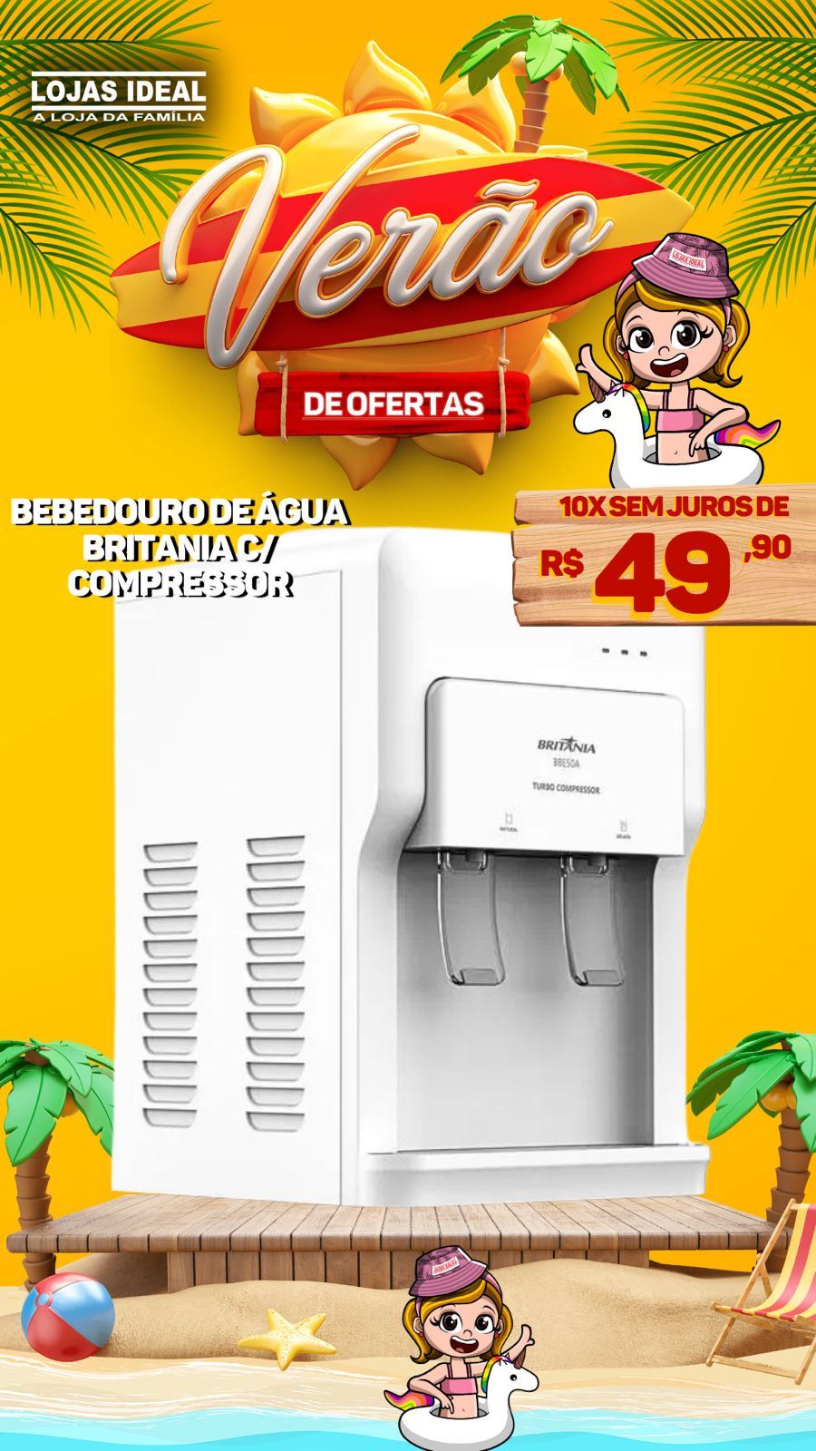 Entre as ofertas, o bebedouro de água Britânia com compressor está disponível por 10x sem juros de R$ 49,90, garantindo água gelada e refrescante em qualquer momento do dia. Já a cervejeira Fricon de 110 litros, perfeita para manter bebidas na temperatura ideal, pode ser adquirida por 10x sem juros de R$ 239,90.