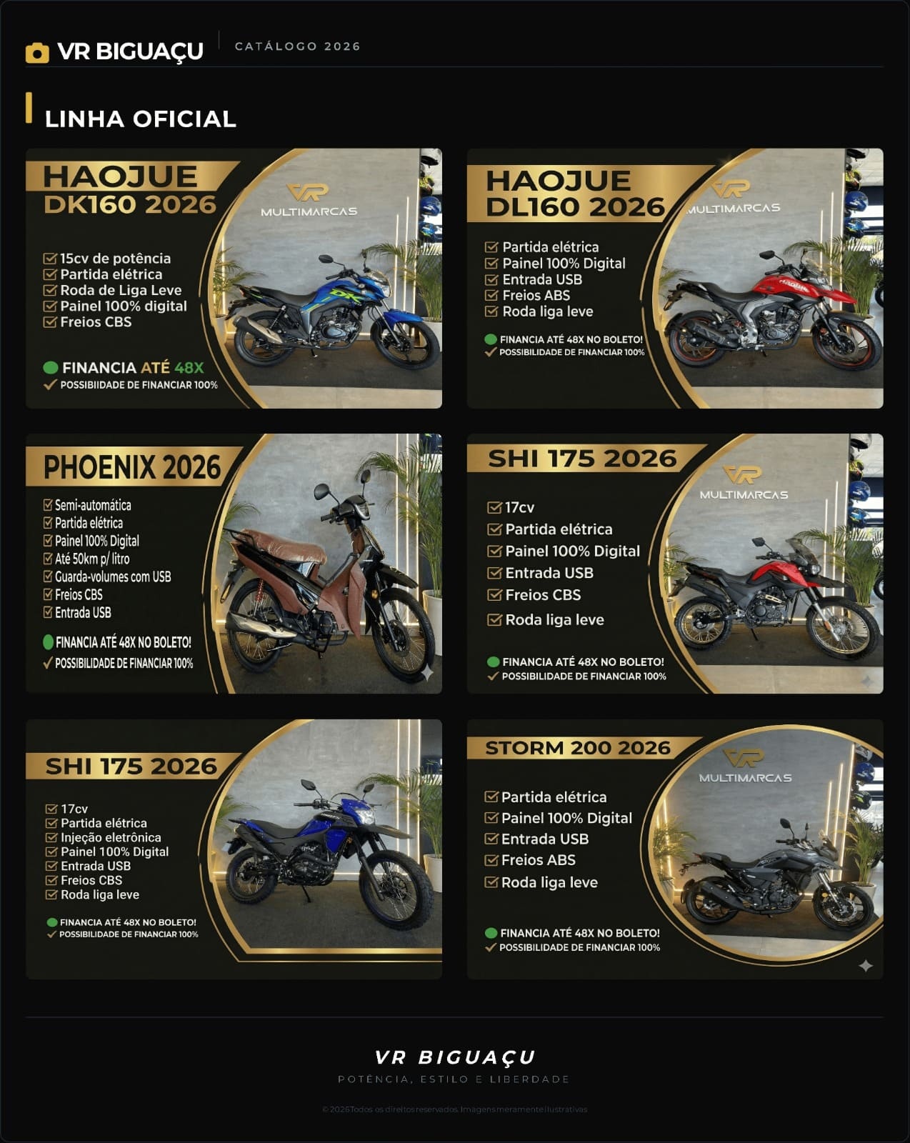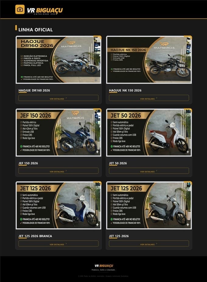 A VR Multimarcas Biguaçu acaba de lançar seu catálogo oficial para o ano de 2026, trazendo uma seleção de motocicletas que combinam potência, estilo e liberdade. A nova linha foca em atender diferentes perfis de motociclistas, desde modelos urbanos econômicos até opções de maior cilindrada.