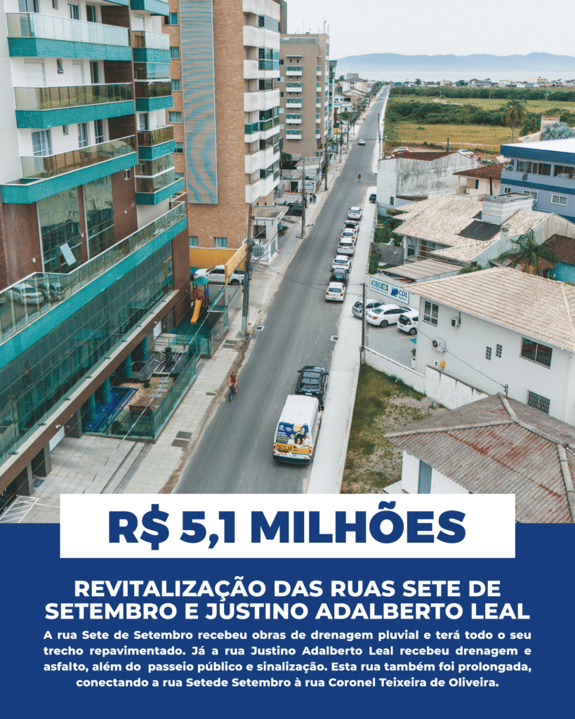 R$ 5,1 milhões em investimentos transformam ruas Sete de Setembro e Justino Adalberto Leal em Biguaçu